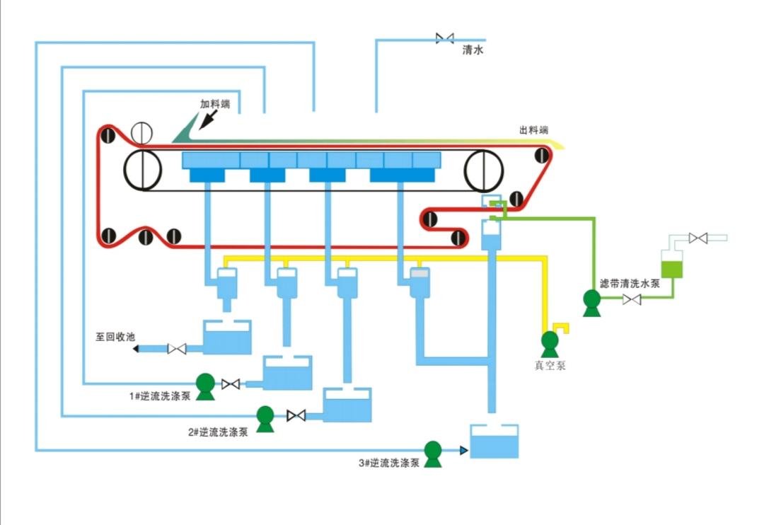 連續(xù)濾布洗滌,保證穩(wěn)定的滲透性和過濾效果。